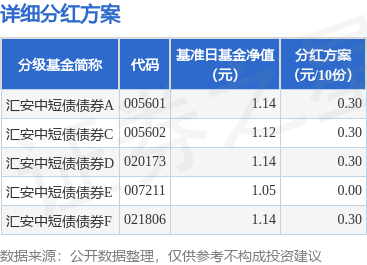 本次分红对象为权益登记日在汇安基金管理有限责任公司登记在册的本基金全体持有人。,权益登记日为10月16日,现金红利发放日为10月17日。对于选择红利再投资方式的投资者,将以2025年10月16日的基金份额净值为计算基准确定再投资份额,本基金注册登记机构将于2025年10月17日对红利再投资的基金份额进行确认。2025年10月20日起,投资者可以查询、赎回红利再投资的份额。根据相关法律法规规定,对投资者(包括个人和机构投资者)从基金分配中取得的收入,暂不征收所得税。本基金本次分红免收分红手续费和再投资手续费。